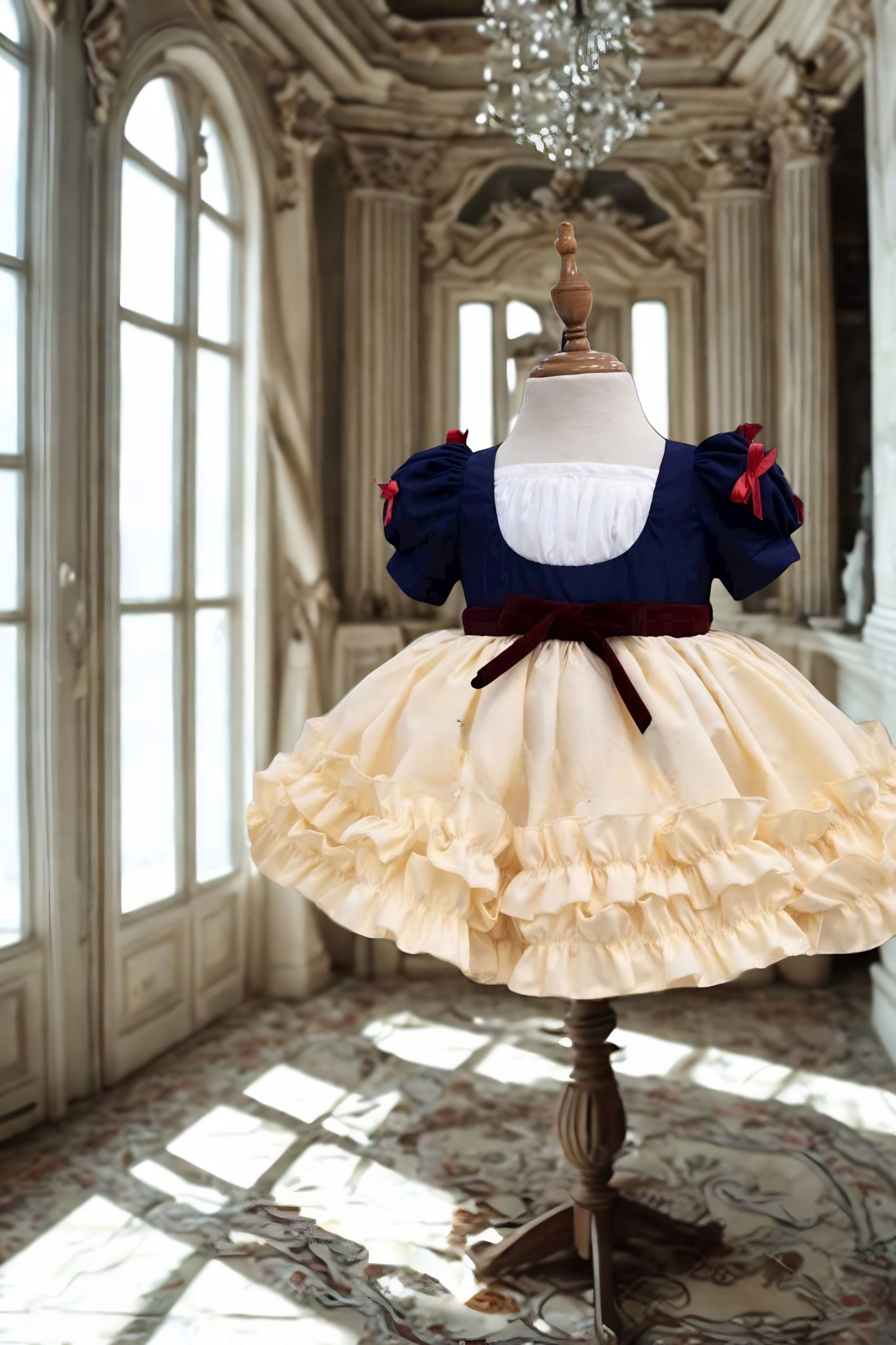 This handmade baby dress is designed in a classic fairy-tale style, featuring rich colors, elegant details, and a playful silhouette perfect for special occasions and dress-up moments.