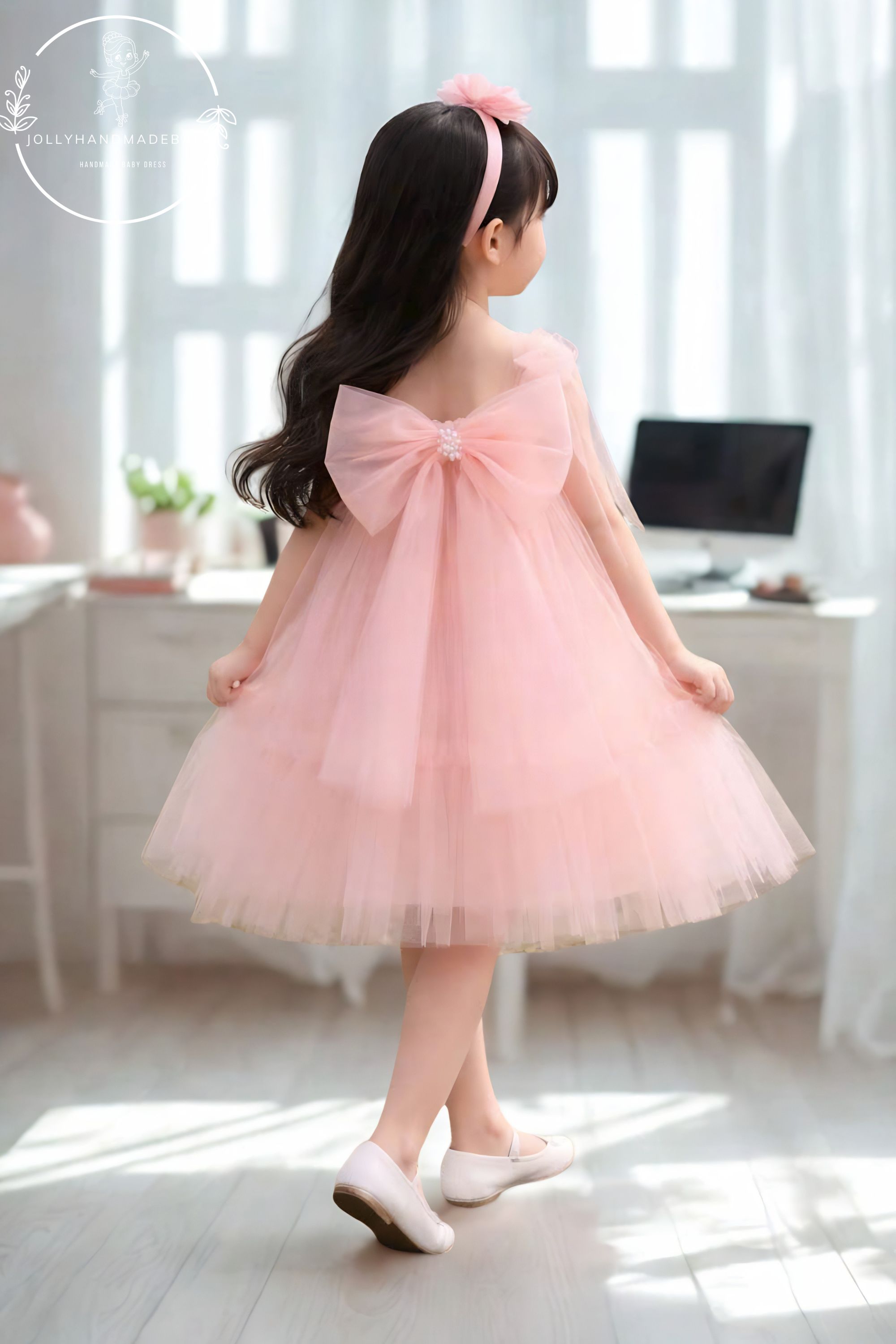 Layers of soft organza create a dreamy, fluffy silhouette that moves beautifully with every step, while the oversized bow adds a bold yet delicate statement. This dress is designed to make every moment feel magical and unforgettable.