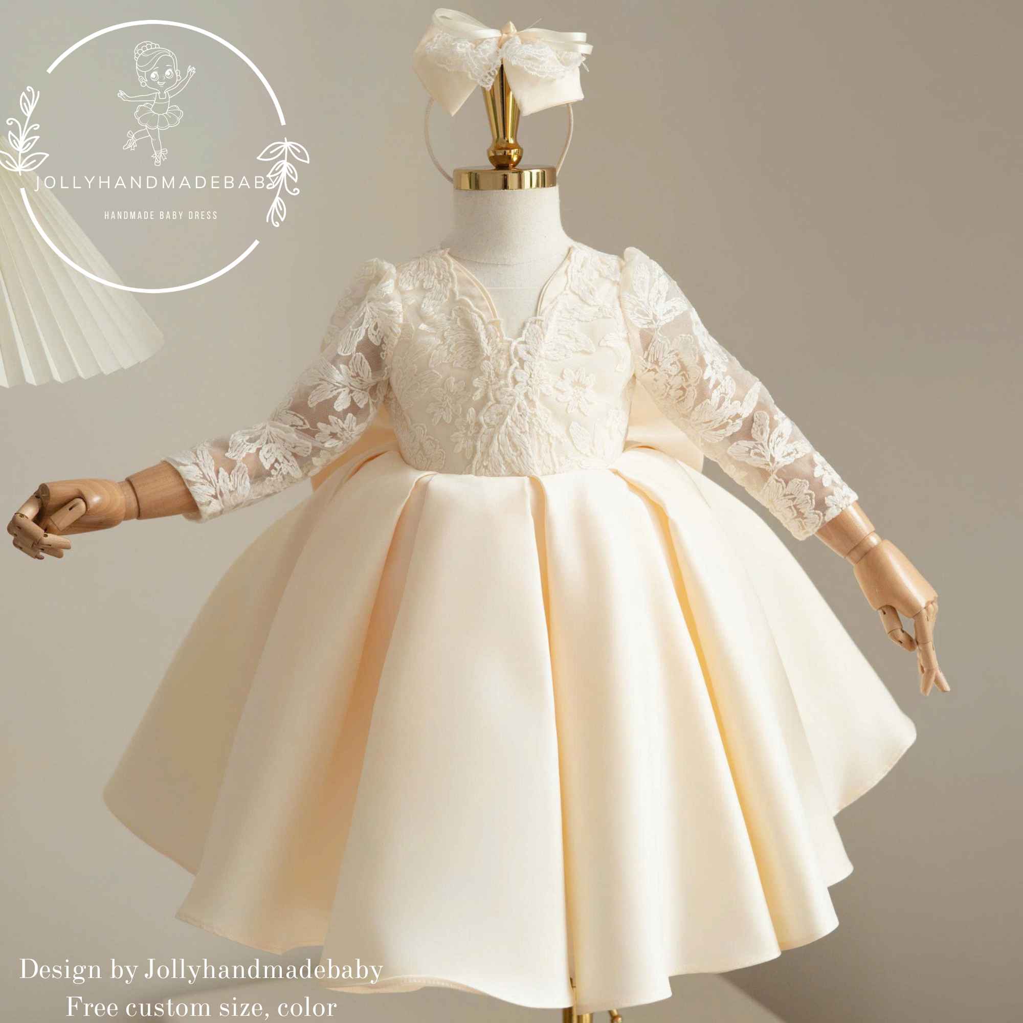 ✨ Elegant Ivory Flower Girl Dress – Handmade by JollyHandmadeBaby