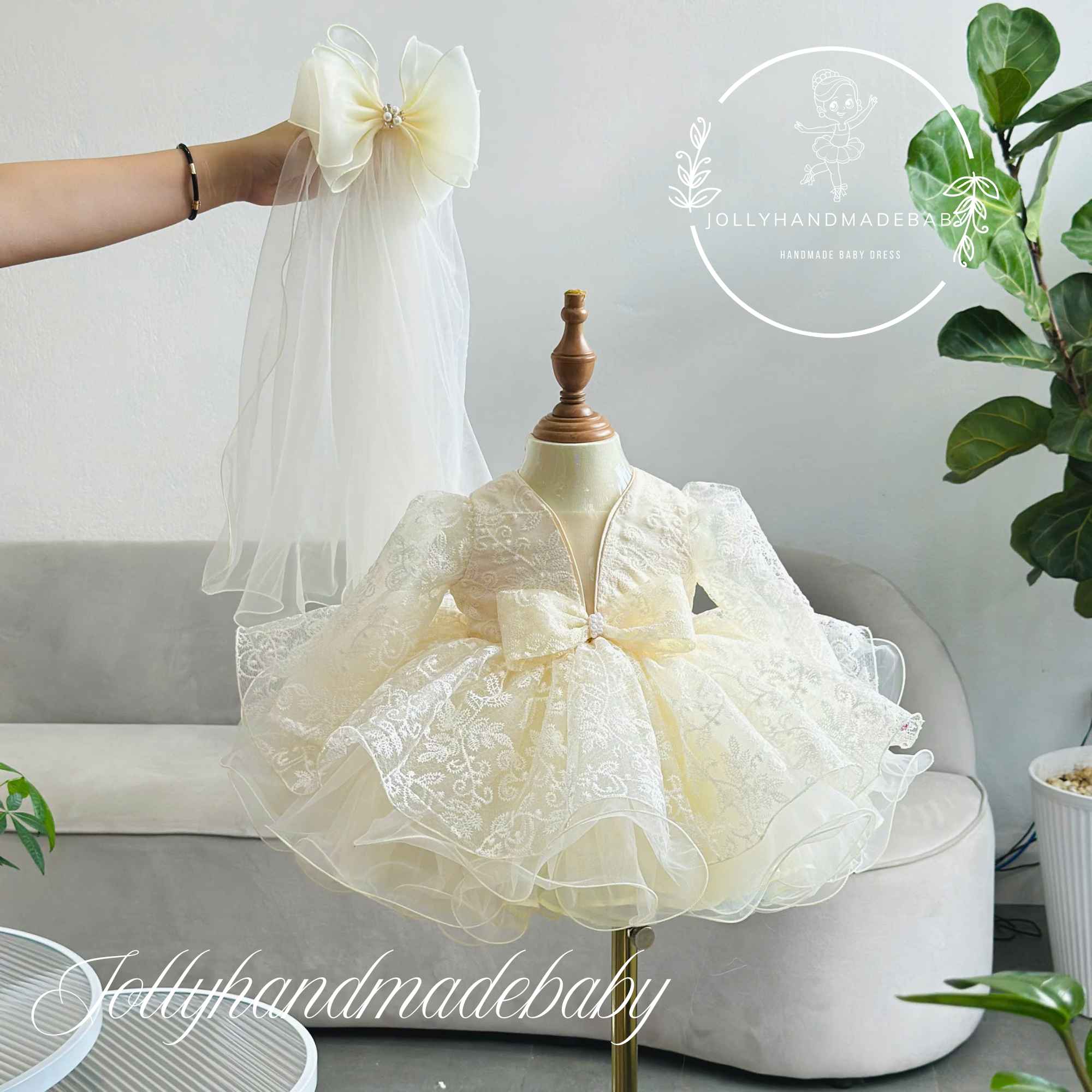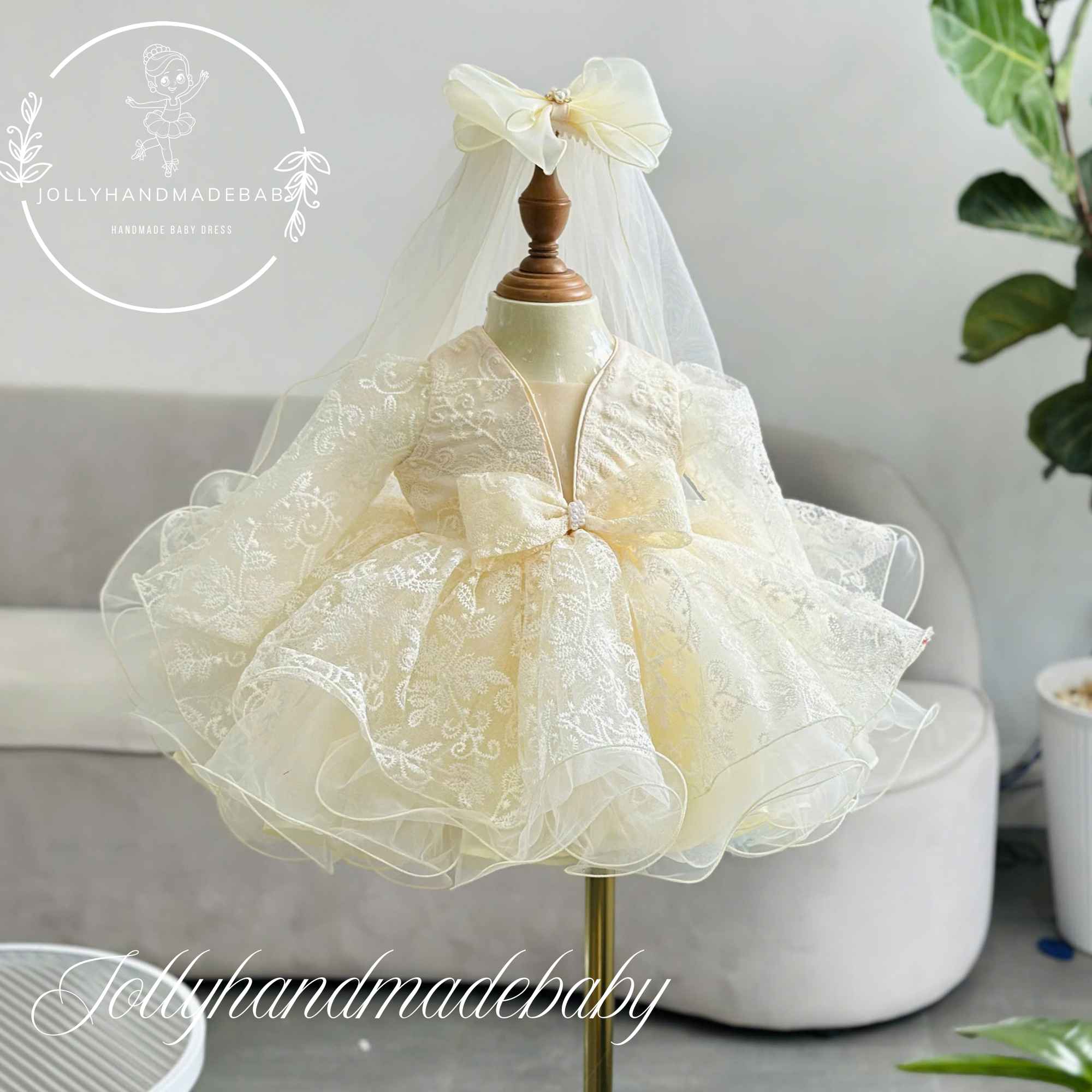 🌸Ivory Lace Tulle Dress for Baby Girls – Elegant Baptism & Christening Dress