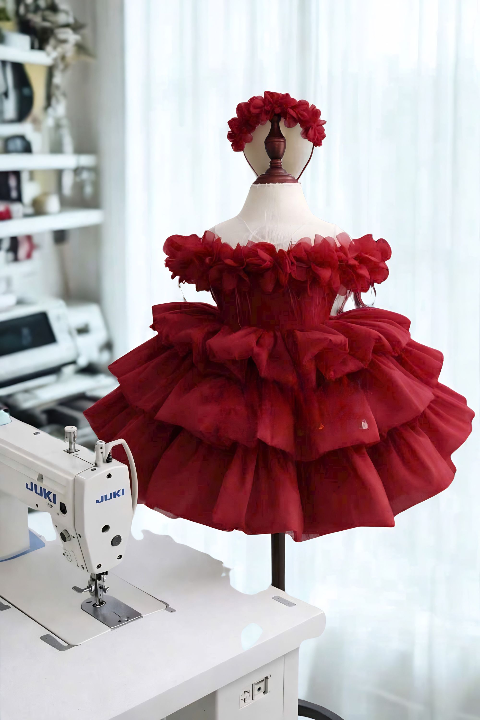 Maroon Baby Girl Dress, Cream Tutu Flower Girl Dress, Handmade Toddler Birthday Dress, Princess Party Dress, Big Bow Back, Custom Size