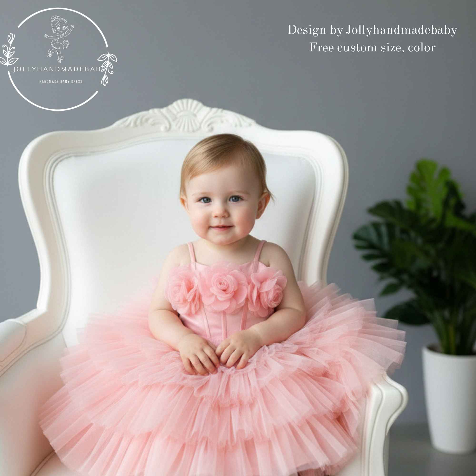 - Peach Flower Girl Dress, Baby Tutu Dress, Toddler Birthday Dress, 3D Rose Dress, Handmade Baby Girl Dress, Princess Tulle Dress