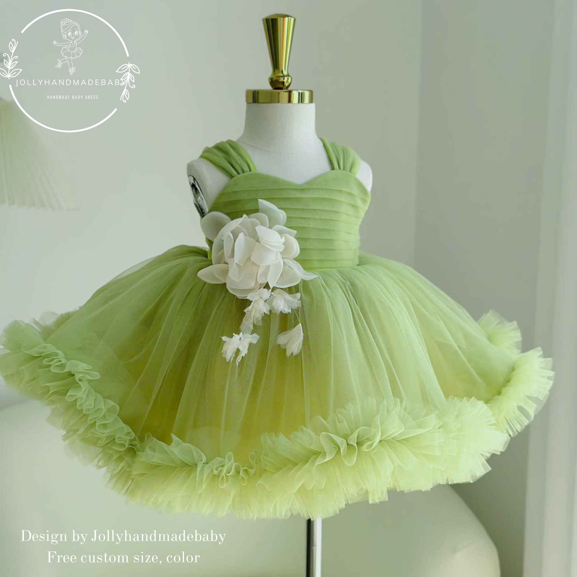 Sage Green Flower Girl Dress – Elegant Handmade Tulle Dress for Baby & Toddler Girls