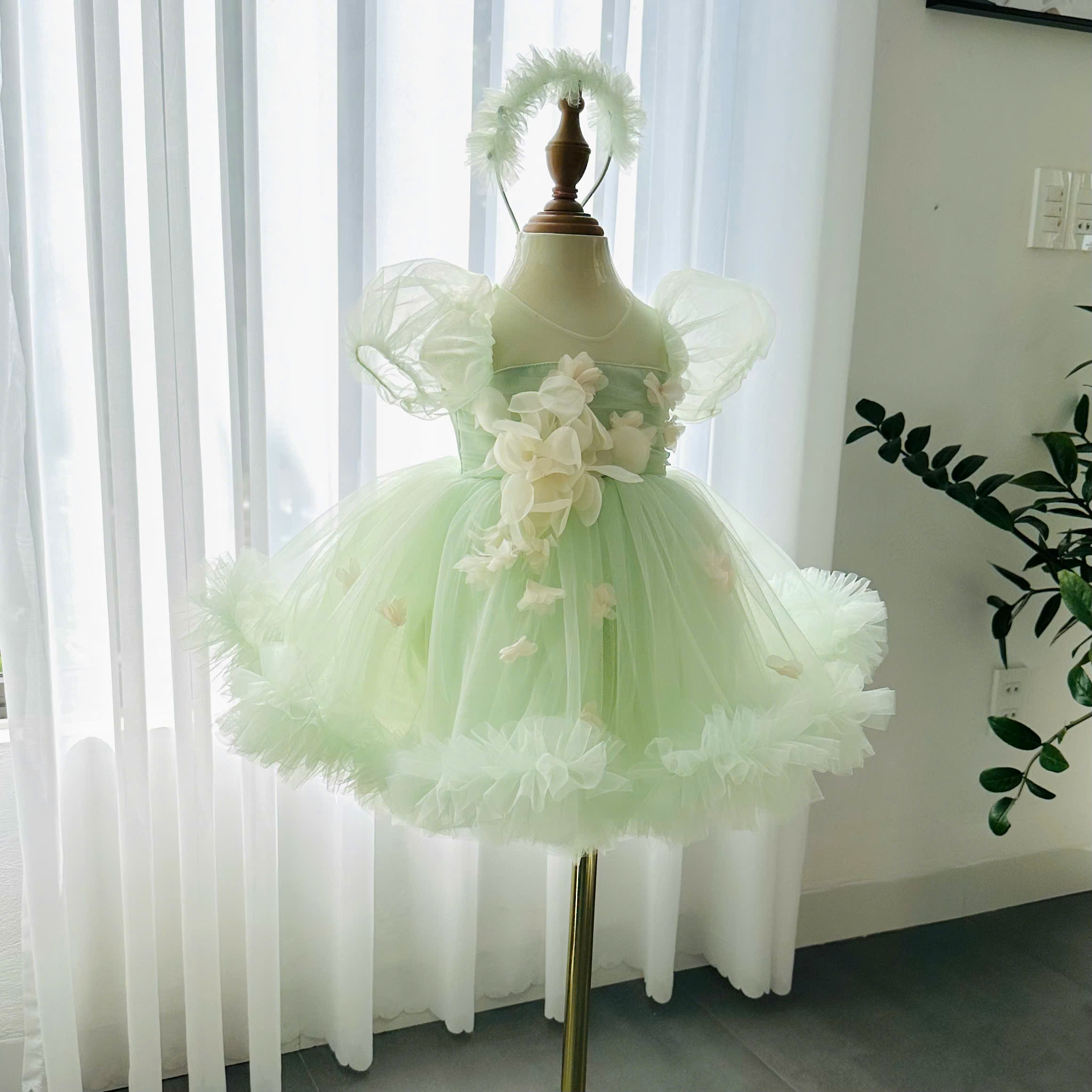 The process started with carefully selecting each fabric. Layers of airy tulle were paired with a smooth, breathable lining to ensure comfort for a little girl’s sensitive skin. Nothing was rushed. Every material was touched, tested, and chosen with intention.