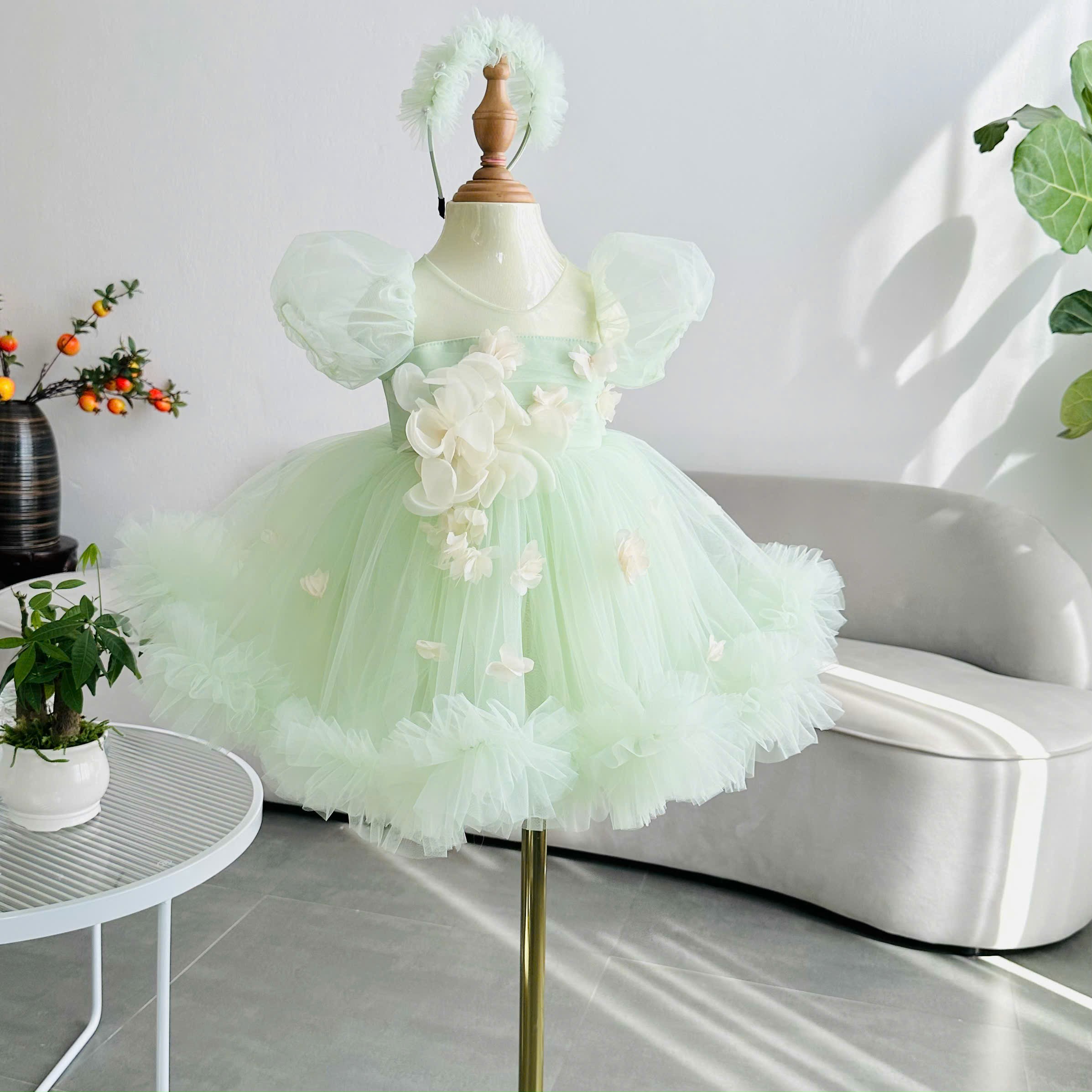 For this soft *mint green* dress, the inspiration came from the quiet beauty of spring mornings. The gentle *sage green* tones were chosen to reflect freshness, innocence, and the softness of childhood 🍀 It had to feel light, like a breeze, and delicate, like petals just beginning to bloom.
