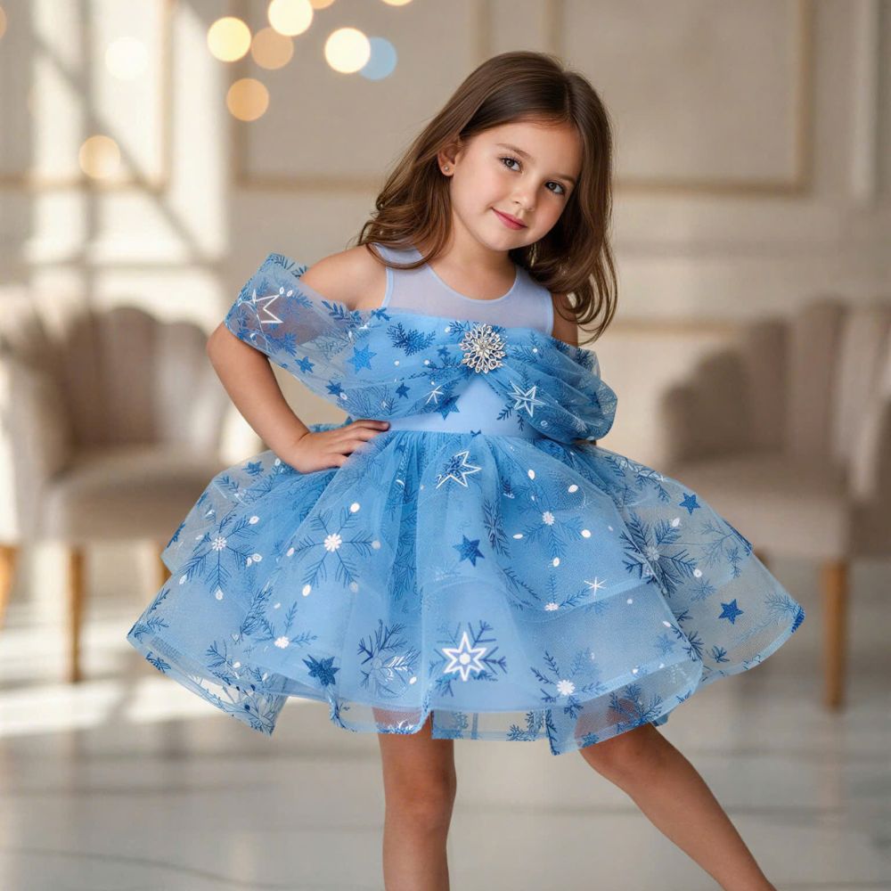 The sewing began slowly. Every stitch was placed with intention. The bodice was shaped to be soft yet structured, the sleeves light and airy, and the skirt designed to flow like a frozen breeze. Tiny details—subtle sparkles and sheer overlays—were added one by one, like snowflakes forming in silence. ❄️